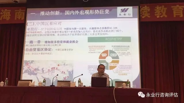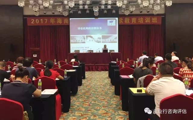 2017年9月18日,海南省土地估价师与土地登记代理人协会在海口举办了土地估价师继续教育培训班,永业行总裁潘世炳应邀讲授《评估机构创新体系》,并受中国土地估价师与土地登记代理人协会委托,对本次培训进行实地检查、考评。
