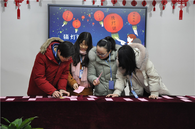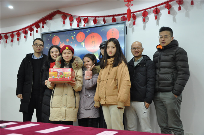 “与我同行”猜一字;“遇事不求人”打一成语;“八骏日行三万里”打《三国演义》人名……诸如此类的灯谜近百余条。有人“团战”,有人“独斗”;有人一头雾水,有人顿生灵感;有人眉头紧锁,有人开怀大笑。领奖处更是一番热闹忙碌的场景,猜对谜底的小伙伴们纷纷收获了薯片、饮料、爱心大枣等战利品,礼轻情意重,小小的礼品表达了公司对大家的问候与祝福。